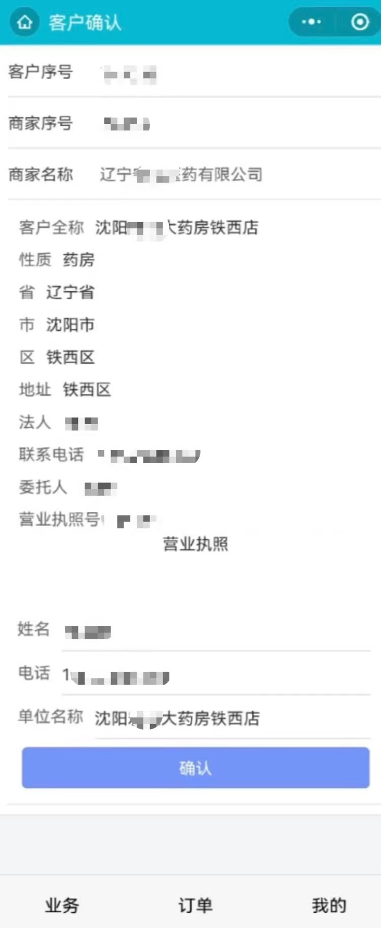 登录:点击业务员发送过来的小程序,然后点击客户确认。(确认姓名、电话及单位名称)